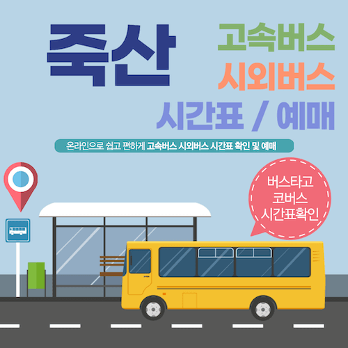 죽산시외버스터미널에서 버스를 예매할때 고속버스와 시외버스는 운영 체계가 다르기 때문에, 노선에 따라 고속버스는 ‘코버스’로 시외버스는 ‘버스타고’를 이용해 적절히 나눠서 사용해야 편리하게 예매할 수 있습니다.